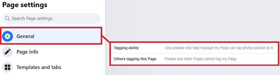 As for photos- and videos-tagging on Facebook Page, you can manage tagging ability of your page here: Go to Manage Page section at the left column, go to Settings > (Page settings) look for ‘Tagging ability’ and ‘Others tagging this Page’.