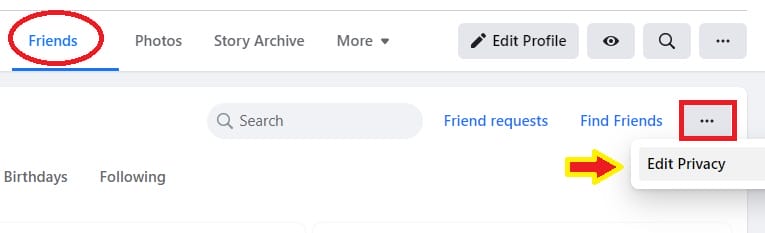 Go to Friends > Edit Privacy > set visibility to ‘Only Me’ for Friend list, Following and Followers.